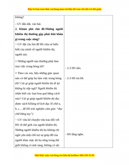 Giáo án Chia sẻ khó khăn với người khuyết tật Hoạt động trải nghiệm 2 Kết nối tri thức