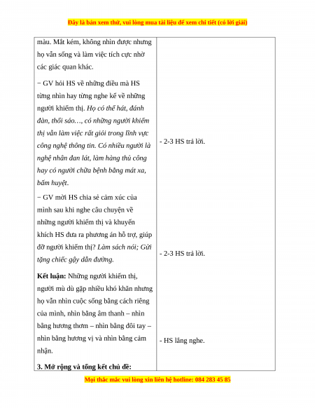 - HS thể hiện đồng cảm với những khó khăn của người khiếm thị trong cuộc sống