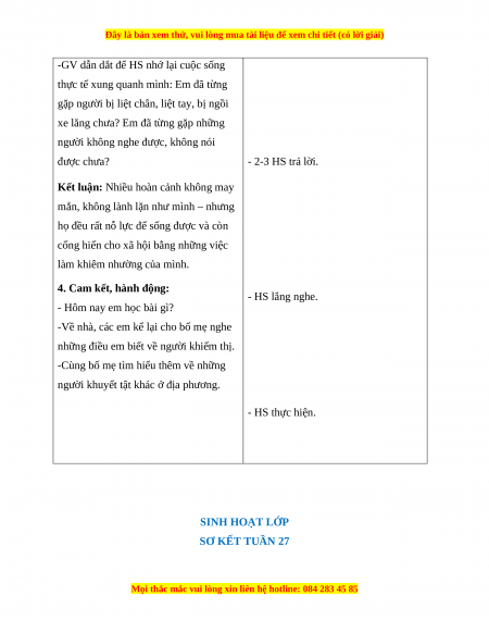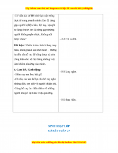 người khuyết tật khác ở địa phương. - HS thực hiện. SINH HOẠT LỚP SƠ KẾT TUẦN 27
