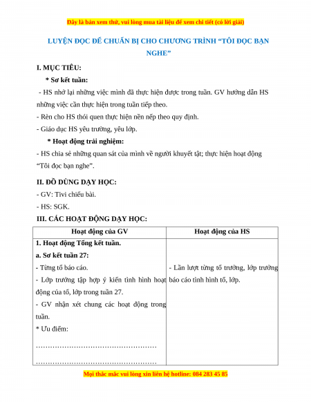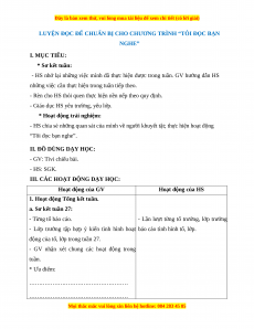 LUYỆN ĐỌC ĐỂ CHUẨN BỊ CHO CHƯƠNG TRÌNH “TÔI ĐỌC BẠN
