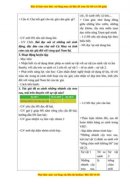 hoạt của tác giả; cảm nhận vẻ đẹp tâm hồn, tình yêu đối với vùng quê Nam bộ của tác giả. 2. Năng lực chung.