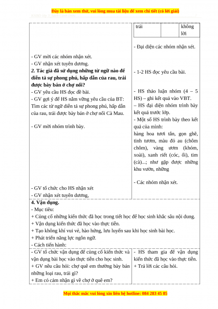 sinh hoạt, nghệ thuật sử dụng các từ láy, các từ chỉ màu sắc trong bài). 3. Phẩm chất.