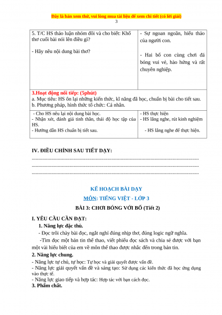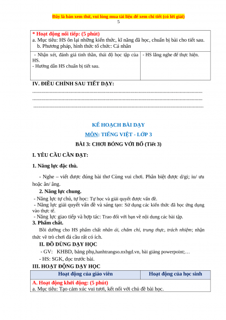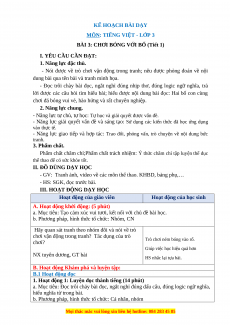 BÀI 3: CHƠI BÓNG VỚI BỐ (Tiết 1) I. YÊU CẦU CẦN ĐẠT: 1. Năng lực đặc thù.