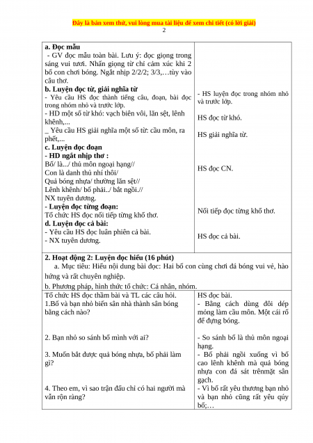 a. Mục tiêu: Hiểu nội dung bài đọc: Hai bố con cùng chơi đá bóng vui vẻ, hào