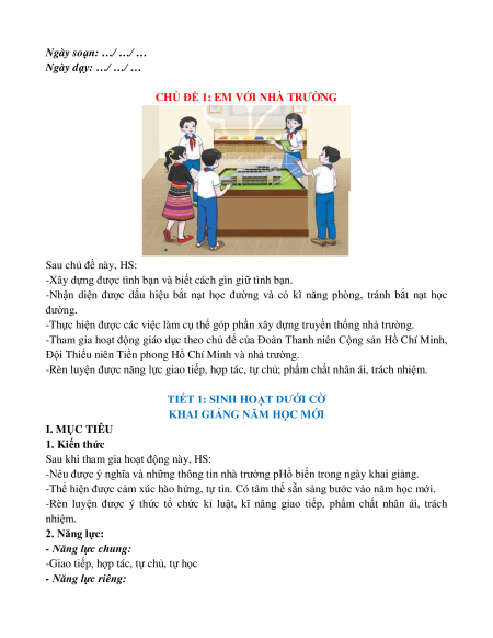 CHỦ ĐỀ 1: EM VỚI NHÀ TRƯỜNG Sau chủ đề này, HS: