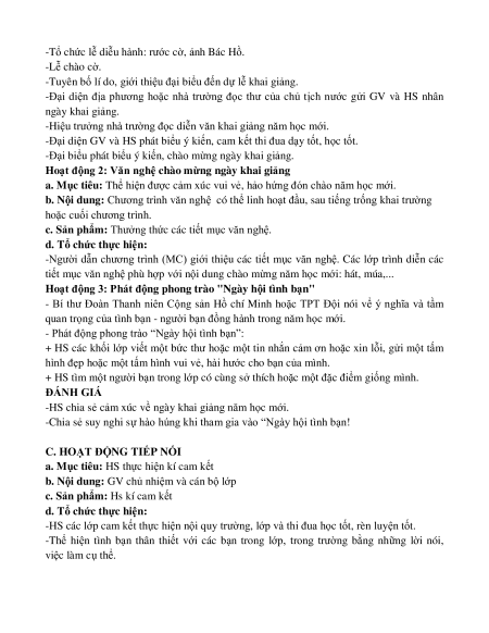 Hoạt động 1: Tổ chức lễ khai giảng a. Mục tiêu: