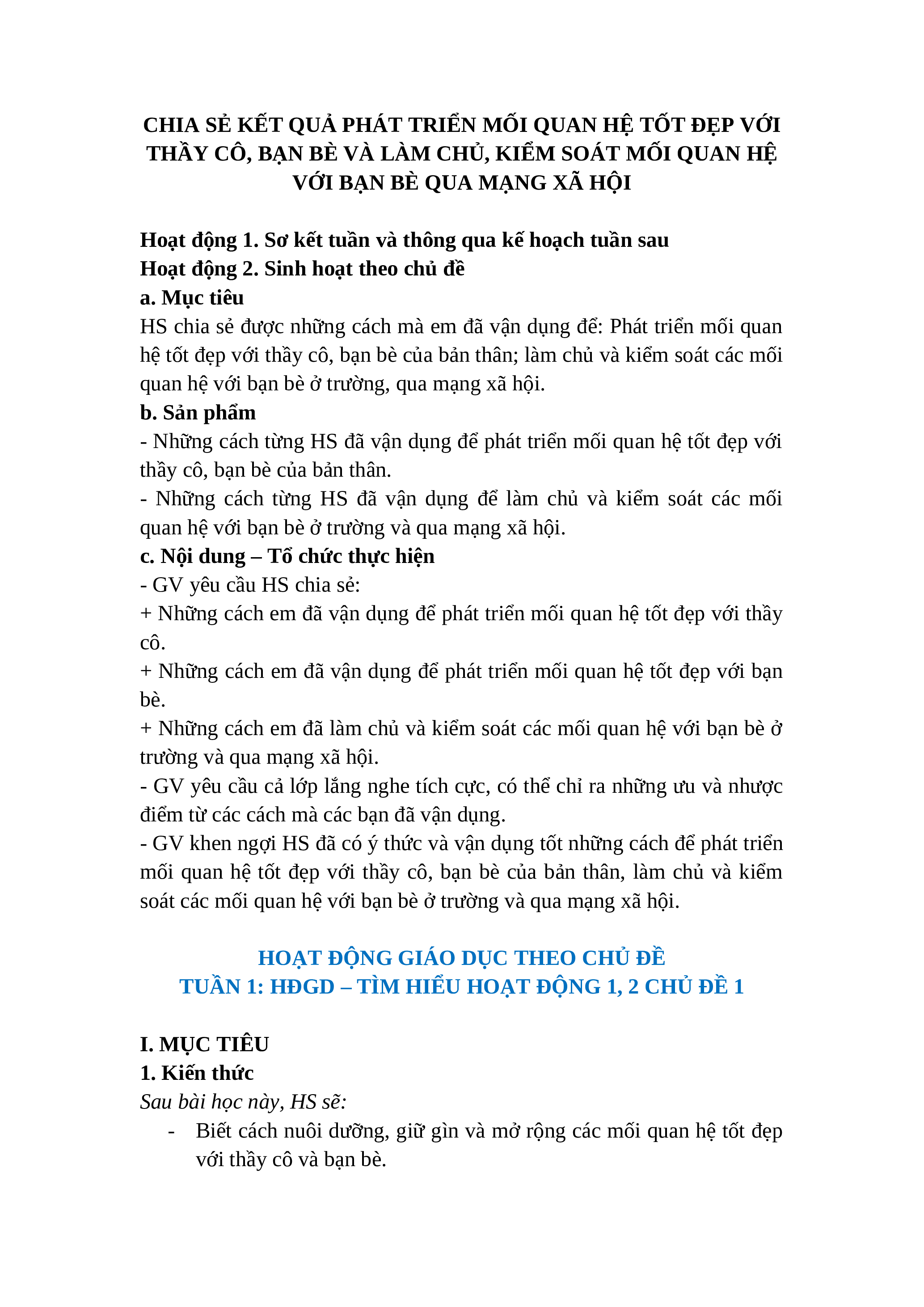 CHỦ ĐỀ 1: PHÁT TRIỂN CÁC MỐI QUAN HỆ TỐT ĐẸP VỚI