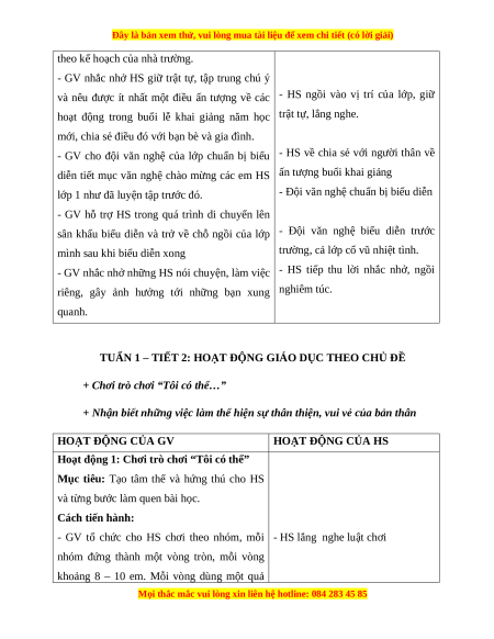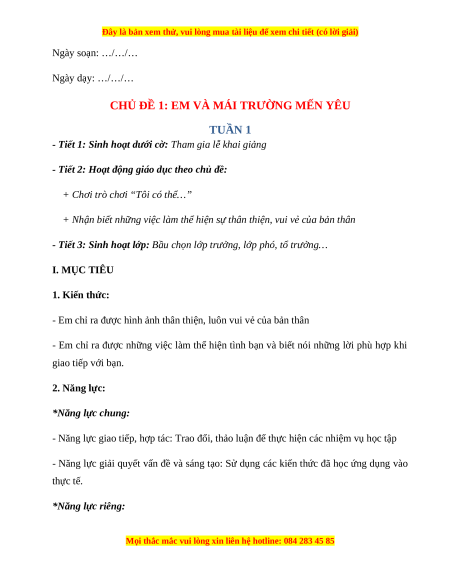 CHỦ ĐỀ 1: EM VÀ MÁI TRƯỜNG MẾN YÊU TUẦN 1
