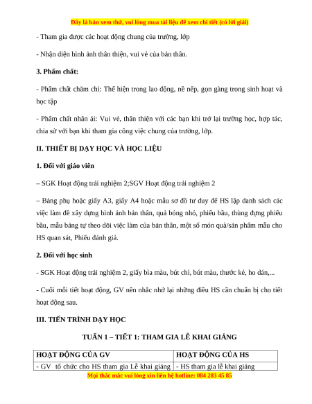 - Tiết 1: Sinh hoạt dưới cờ: Tham gia lễ khai giảng