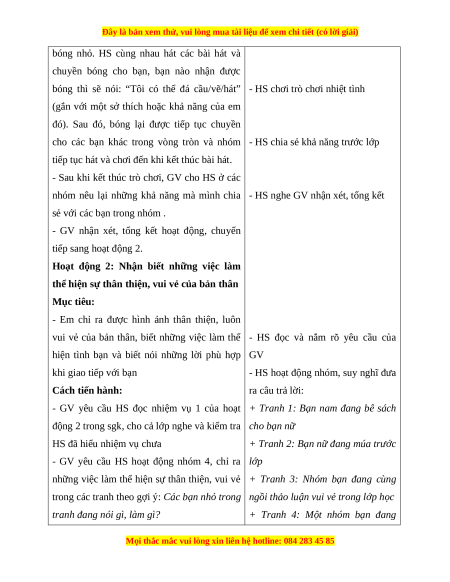 - Em chỉ ra được những việc làm thể hiện tình bạn và biết nói những lời phù hợp khi giao tiếp với bạn. 2. Năng lực: