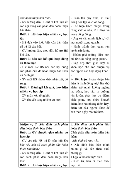 thiện bản thân và xác định được cách phấn đấu hoàn thiện bản thân.