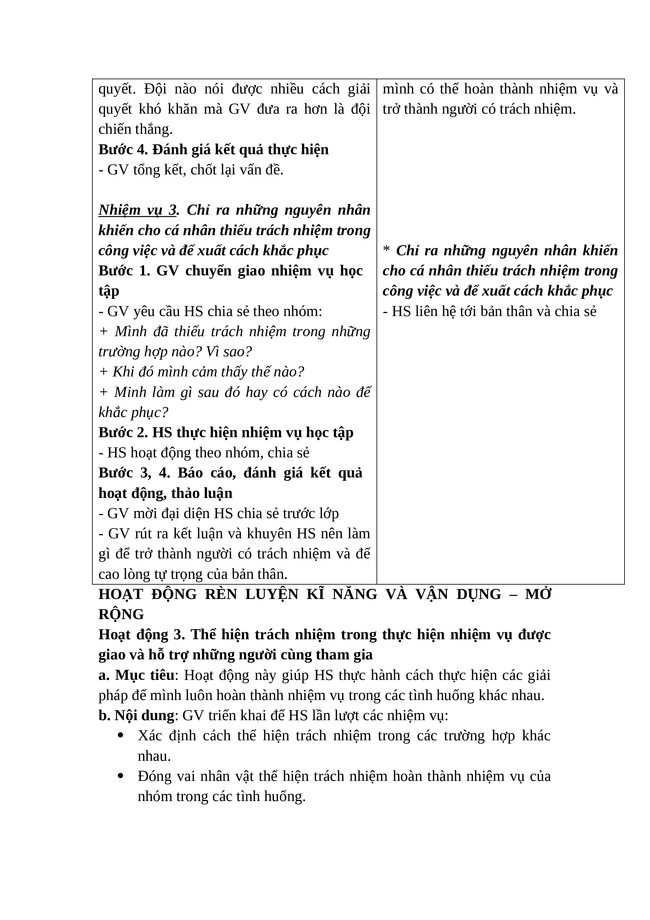 + Làm chủ được bản thân, biết từ chối những quá trình cùng hoạt động: đoàn kết,