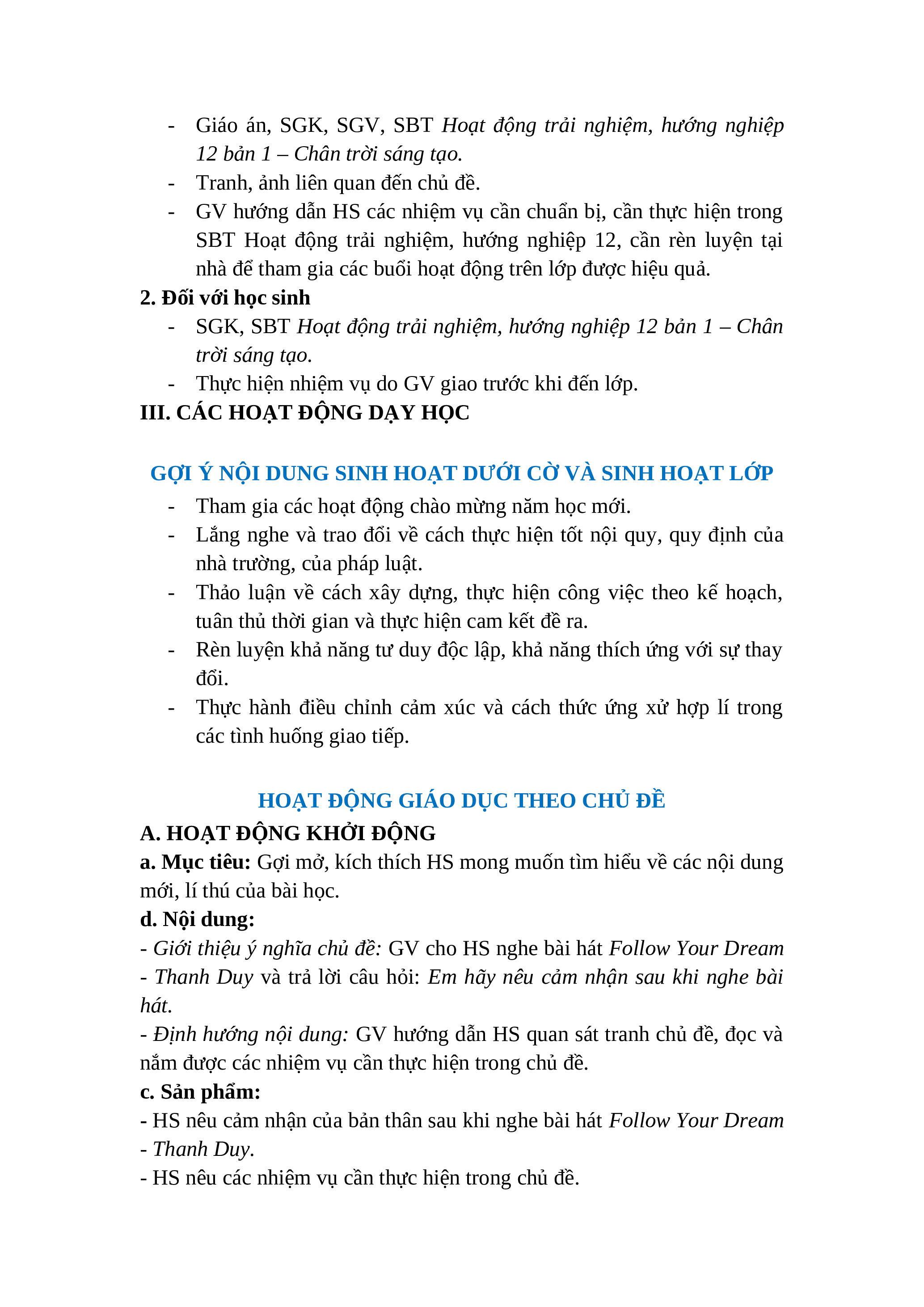 Bộ giáo án Hoạt động trải nghiệm 12 Chân trời sáng tạo đã cập nhật đủ Cả năm.