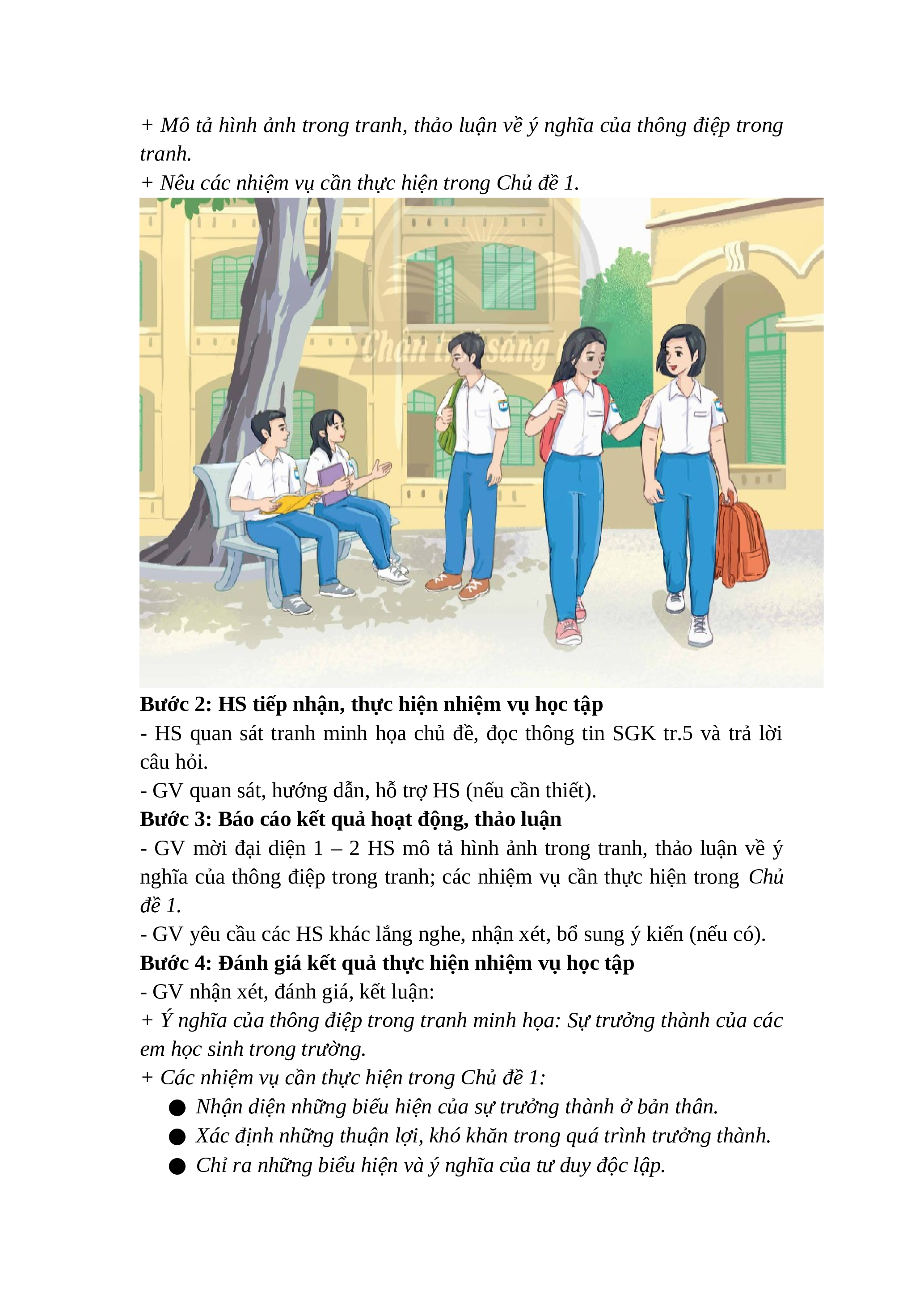 + Các nhiệm vụ cần thực hiện trong Chủ đề 1: