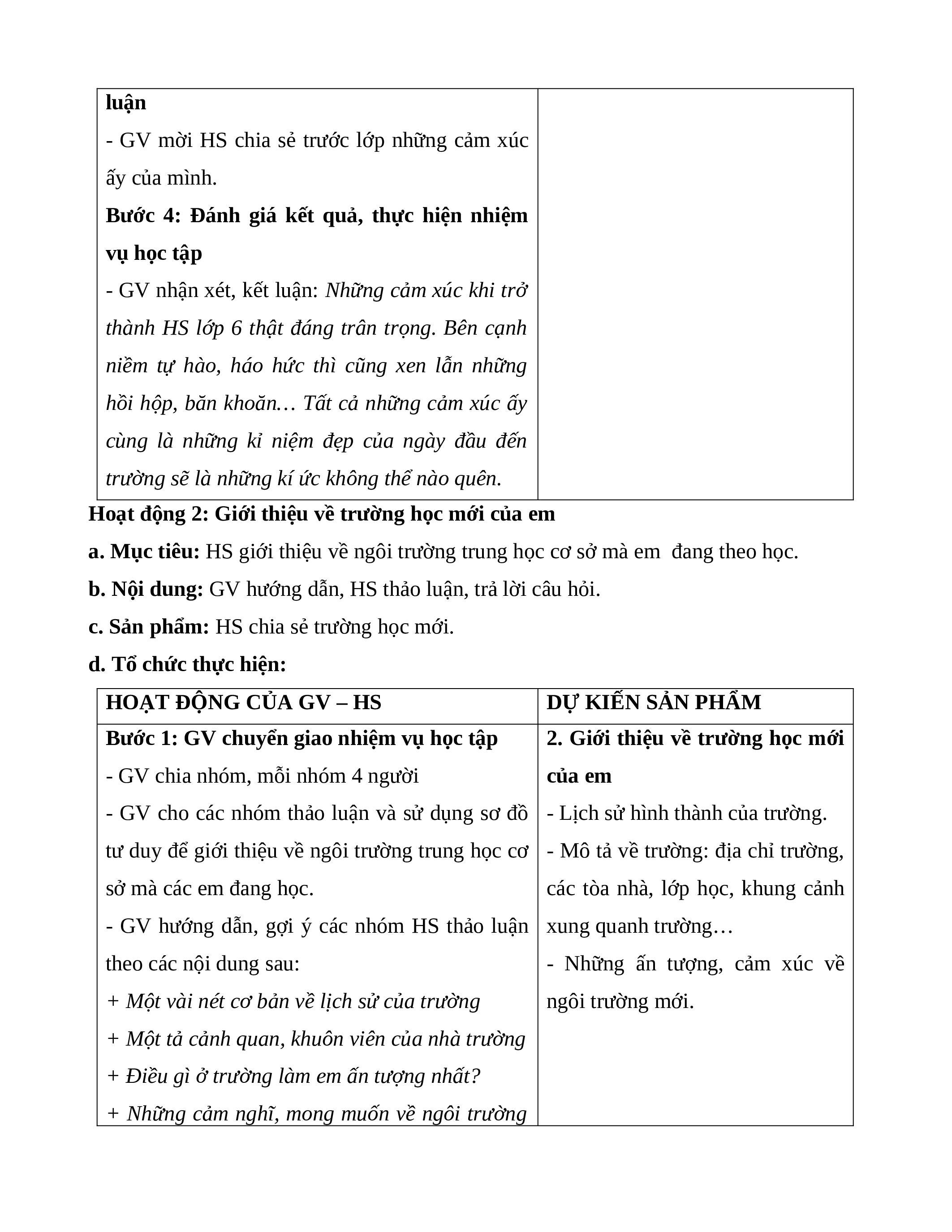Tìm hiểu về trường học mới của em a. Mục tiêu: