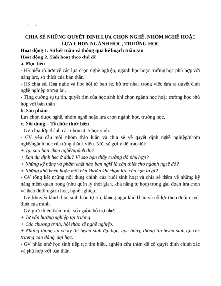- Chia sẻ những quyết định lựa chọn nghề, nhóm nghề hoặc lựa chọn ngành học, trường học.