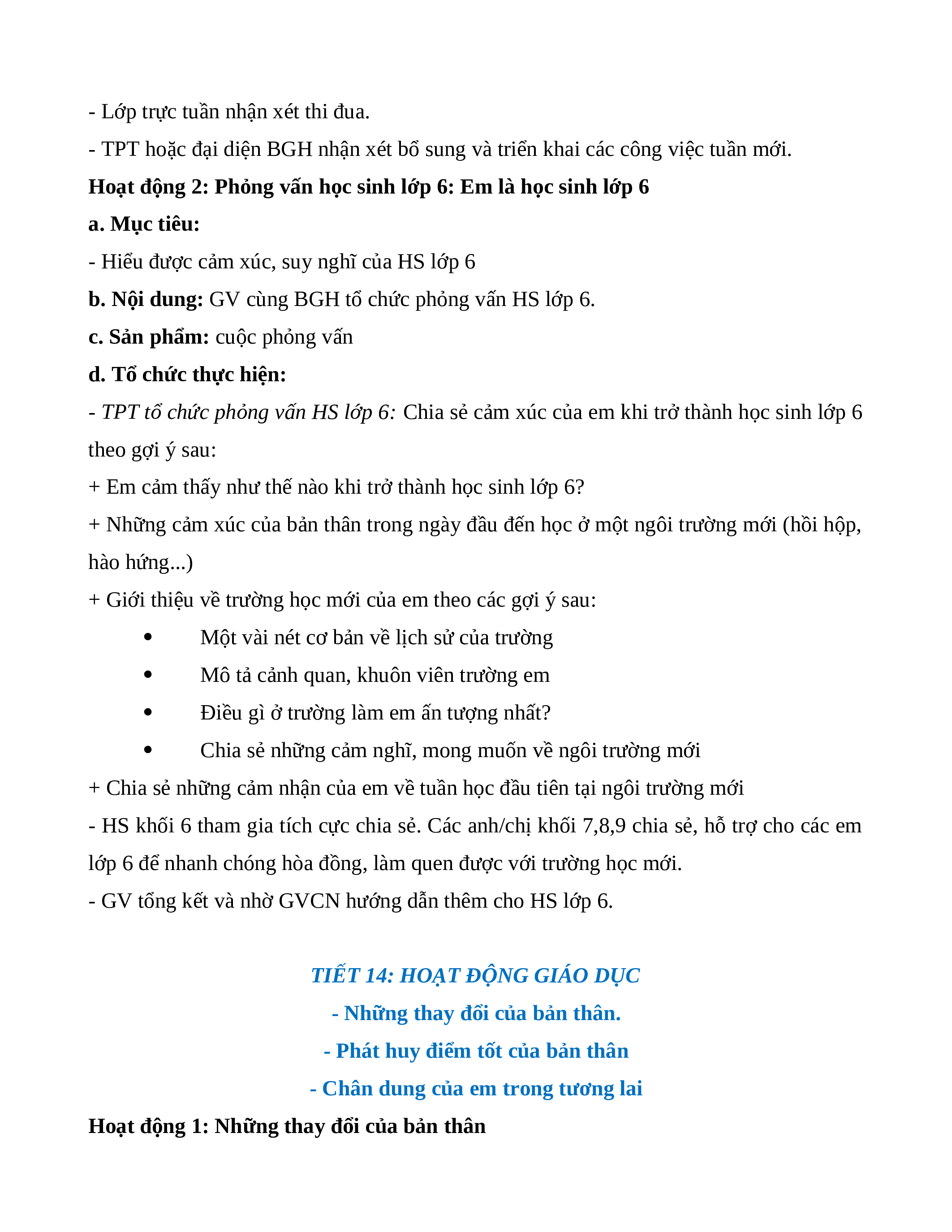 TIẾT 14: HOẠT ĐỘNG GIÁO DỤC