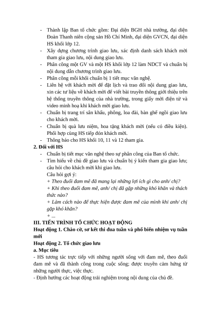 III. TIẾN TRÌNH TỔ CHỨC HOẠT ĐỘNG
