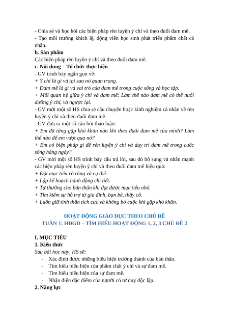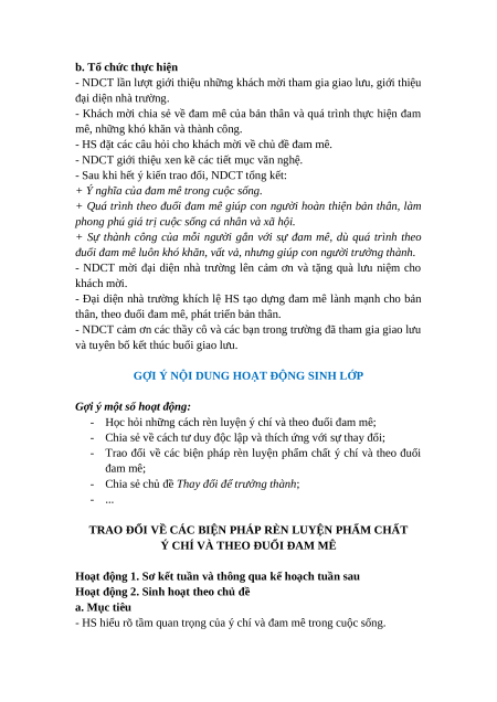 - Trao đổi về các biện pháp rèn luyện phẩm chất ý chí và theo đuổi đam mê;