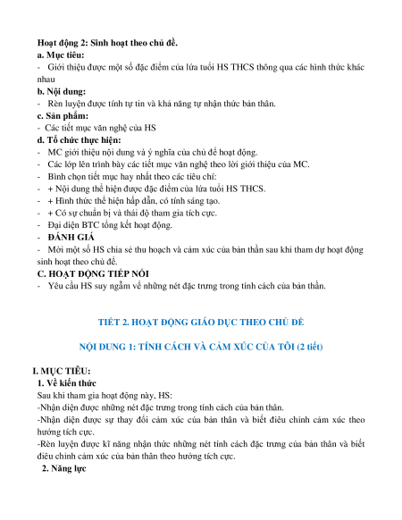 TIẾT 2. HOẠT ĐỘNG GIÁO DỤC THEO CHỦ ĐỀ