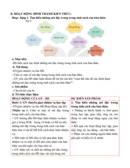 -Nhận diện được những nét đặc trưng trong tính cách của bản thân.