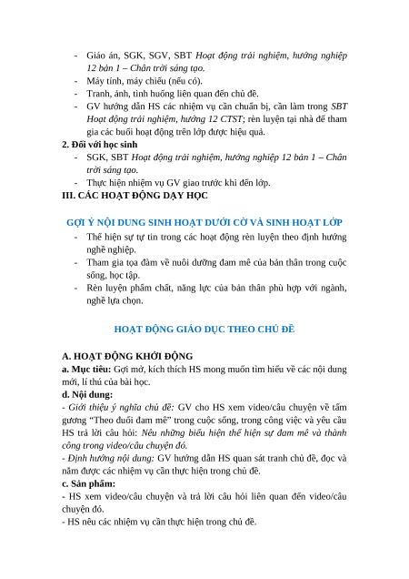 - SGK, SBT Hoạt động trải nghiệm, hướng nghiệp 12 bản 1 – Chân trời sáng tạo.
