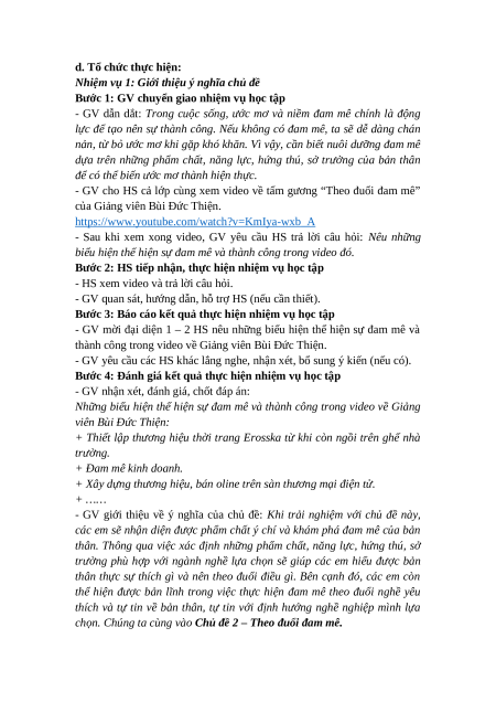 nắm được các nhiệm vụ cần thực hiện trong chủ đề. c. Sản phẩm: