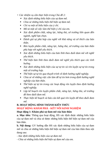 Giáo án Chủ đề 2: Theo đuổi đam mê HĐTN 12 Chân trời sáng tạo