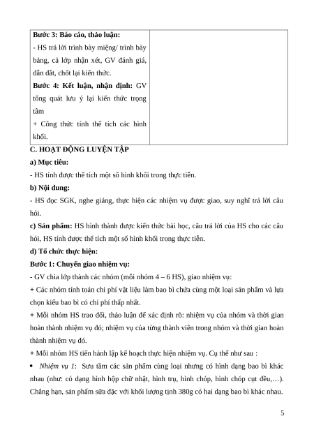 - Giải quyết vấn đề toán học: sử dụng các khái niệm, tính chất của hình khối để
