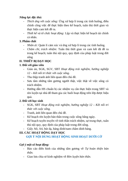 Bộ giáo án Hoạt động trải nghiệm 12 Kết nối tri thức đã cập nhật đủ Cả năm.
