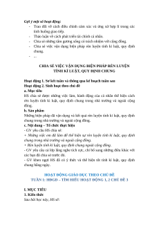 - Định hướng các hoạt động trải nghiệm trong nội dung của chủ đề.
