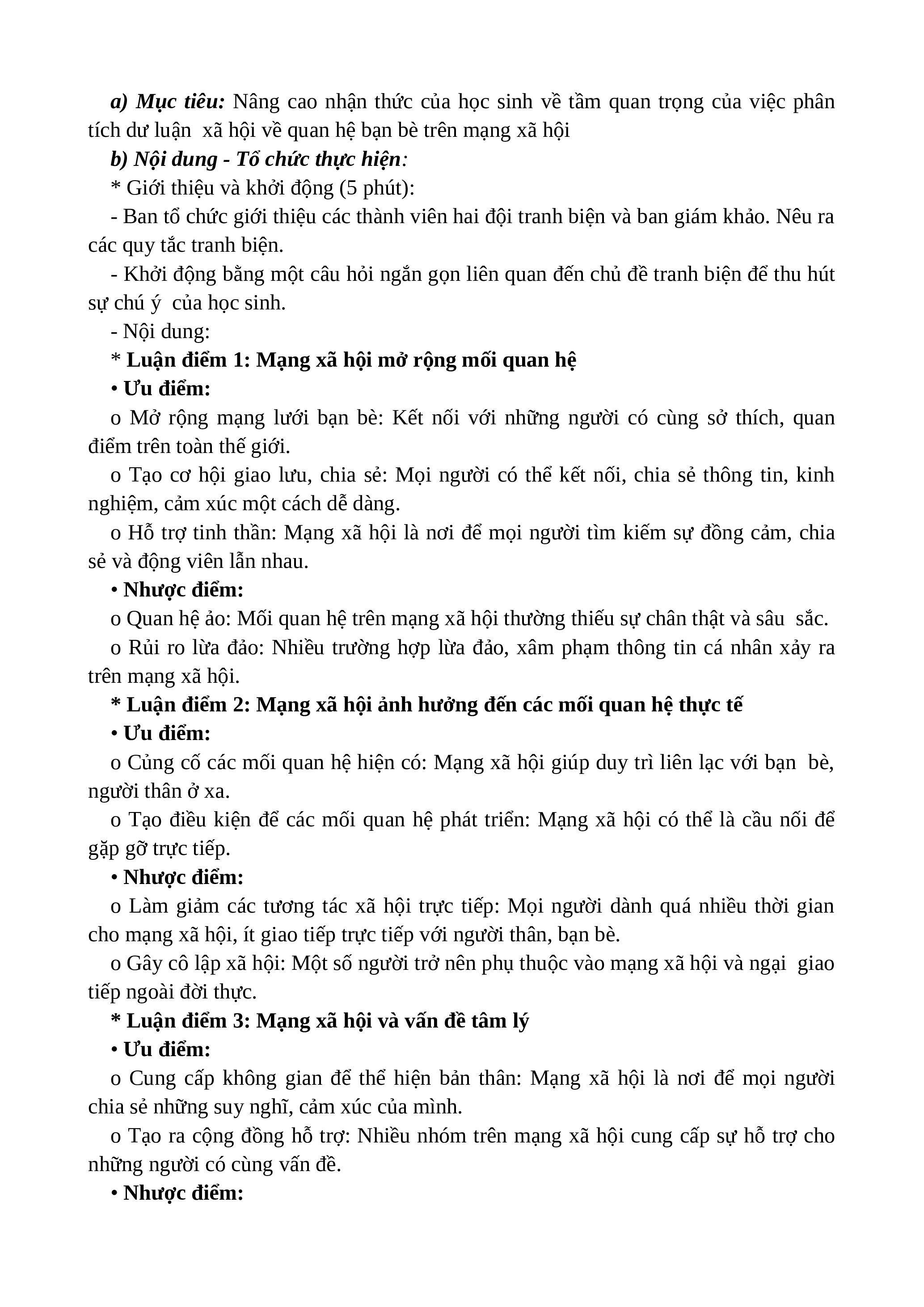 - Rèn luyện kỹ năng tranh biện, tư duy phản biện và lập luận cho học sinh. - Tạo