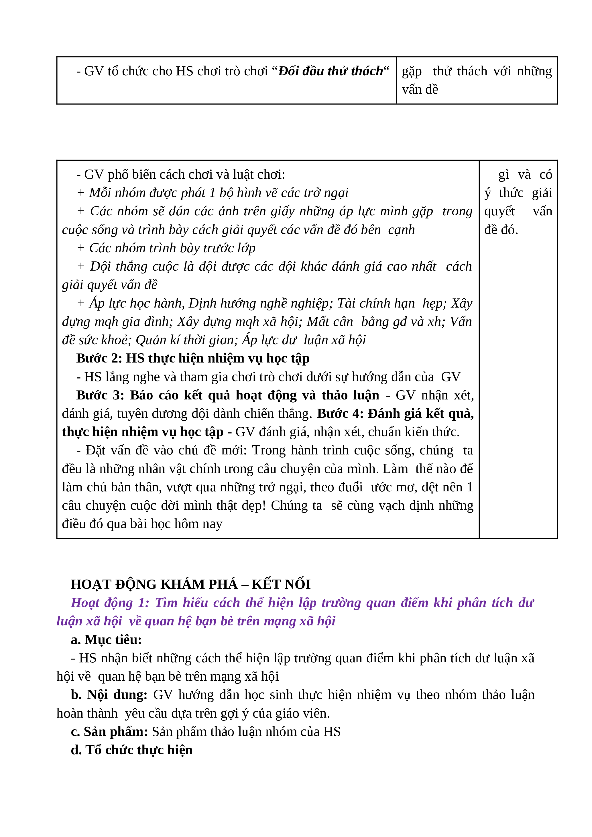 hiện sự trưởng thành của bản thân thông qua trò chơi “Đối đầu thử thách”