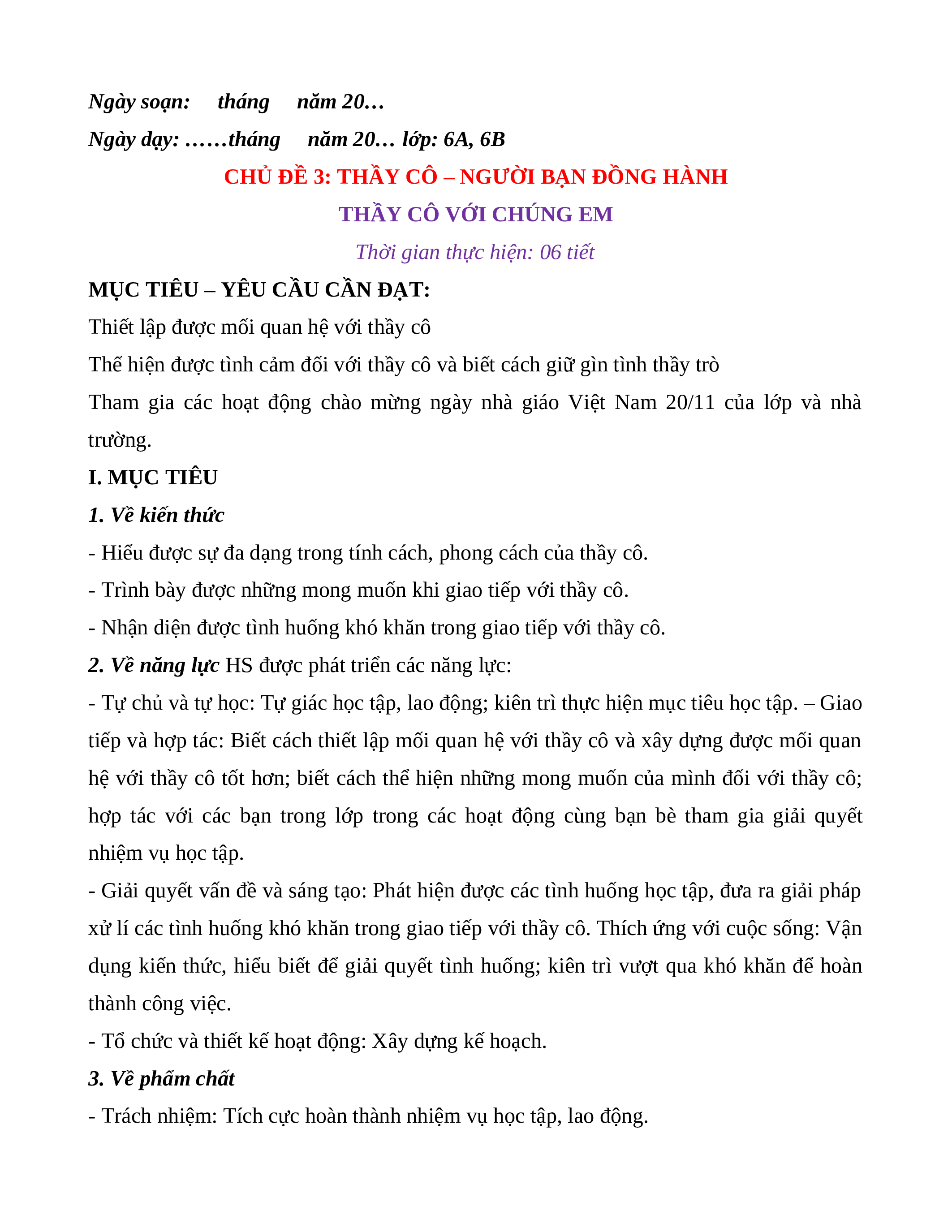Giáo án Chủ đề 3. Thầy cô - người bạn đồng hành