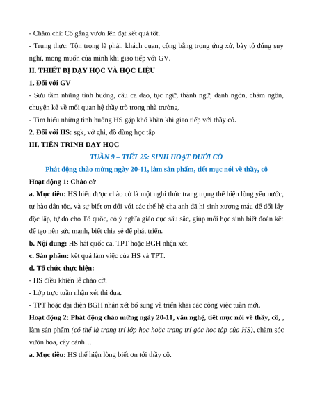 Tham gia các hoạt động chào mừng ngày nhà giáo Việt Nam 20/11 của lớp và nhà trường. I. MỤC TIÊU