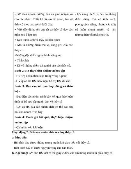 Hoạt động 1: Tìm hiểu về thầy cô a. Mục tiêu: