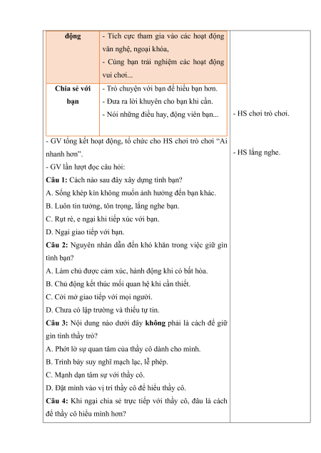 - Năng lực tự chủ và tự học: biết lắng nghe và chia sẻ ý kiến cá nhân với bạn,