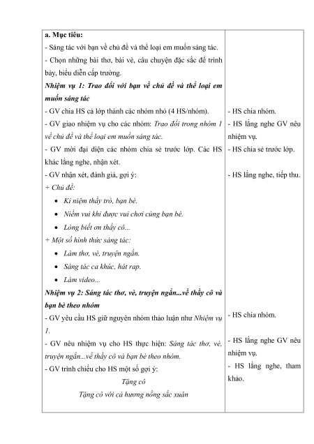 nhiệm vụ học tập, hứng thú với bài học mới. b. Cách tiến hành