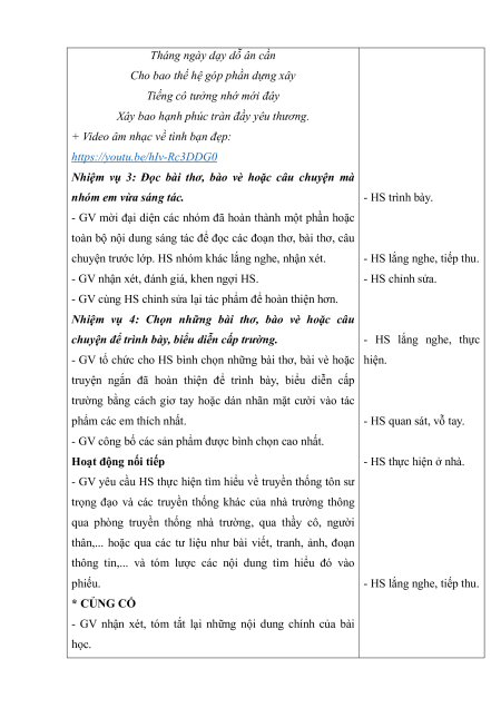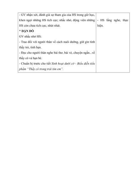 - Năng lực giao tiếp và hợp tác: tìm hiểu cách nuôi dưỡng, giữ gìn tình cảm bạn bè và thầy trò.