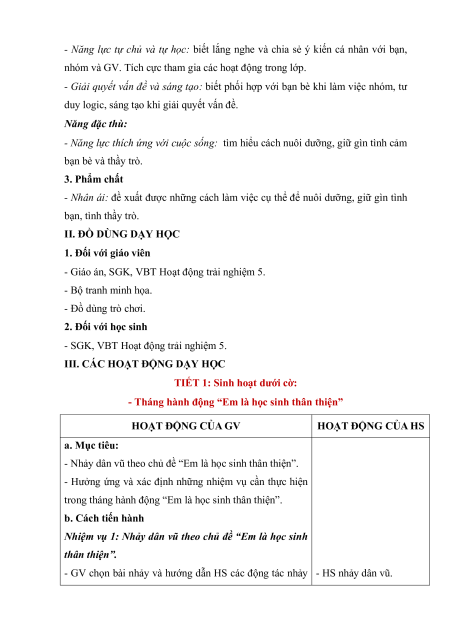 - Tháng hành động “Em là học sinh thân thiện” HOẠT ĐỘNG CỦA GV HOẠT ĐỘNG CỦA HS a. Mục tiêu: