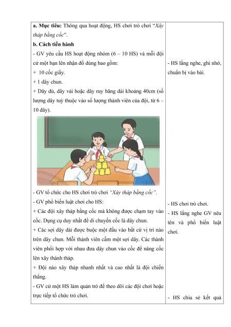 Hoạt động 1: Trò chơi “Xây tháp bằng cốc”