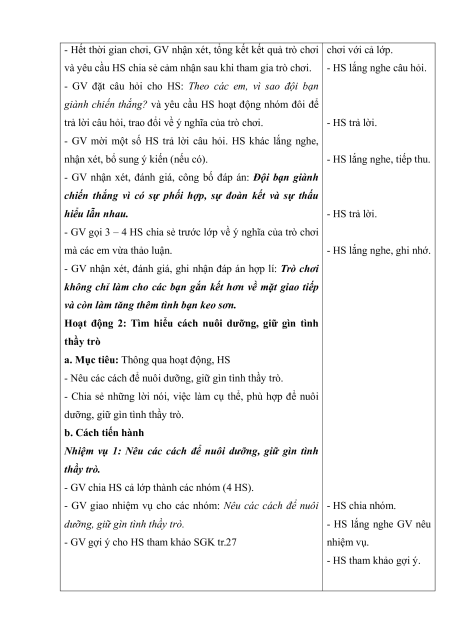 - Nhân ái: đề xuất được những cách làm việc cụ thể để nuôi dưỡng, giữ gìn tình bạn, tình thầy trò. II. ĐỒ DÙNG DẠY HỌC 1. Đối với giáo viên