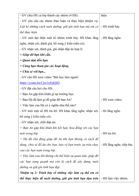 - Tìm hiểu cách nuôi dưỡng, giữ gìn tình bạn HOẠT ĐỘNG CỦA GV HOẠT ĐỘNG CỦA HS
