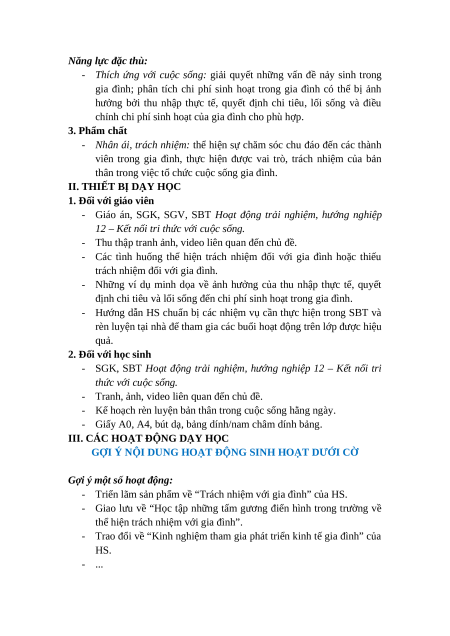 Giáo án Chủ đề 4 HĐTN 12 Kết nối tri thức: Trách nhiệm với gia đình