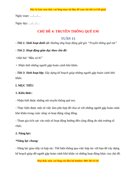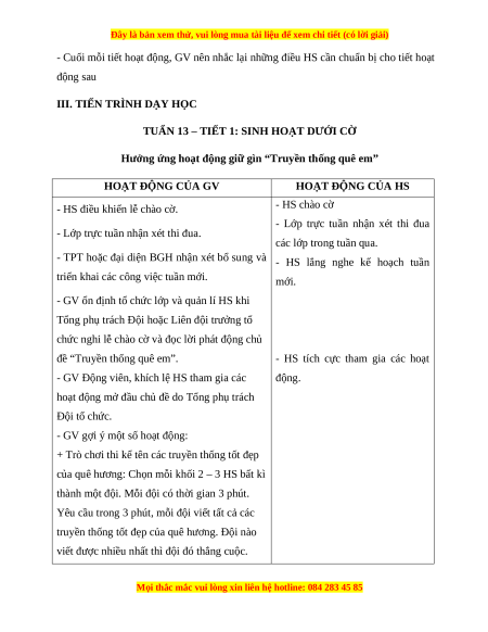 - Tiết 1: Sinh hoạt dưới cờ: Hưởng ứng hoạt động giữ gìn “Truyền thống quê em”