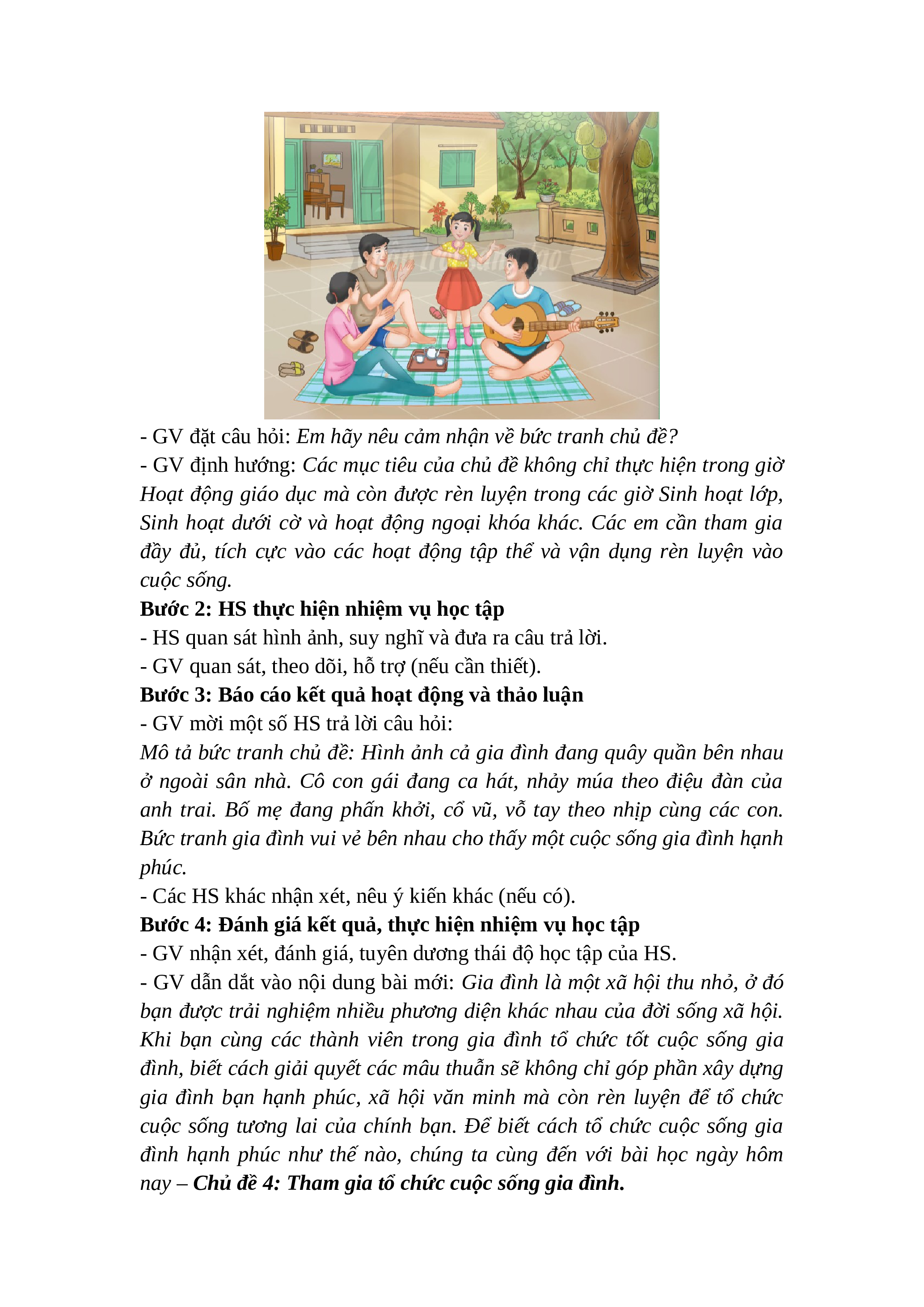 nay – Chủ đề 4: Tham gia tổ chức cuộc sống gia đình.