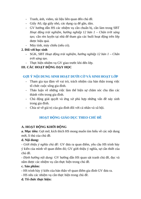 Bộ giáo án Hoạt động trải nghiệm 12 Chân trời sáng tạo đã cập nhật đủ Cả năm.