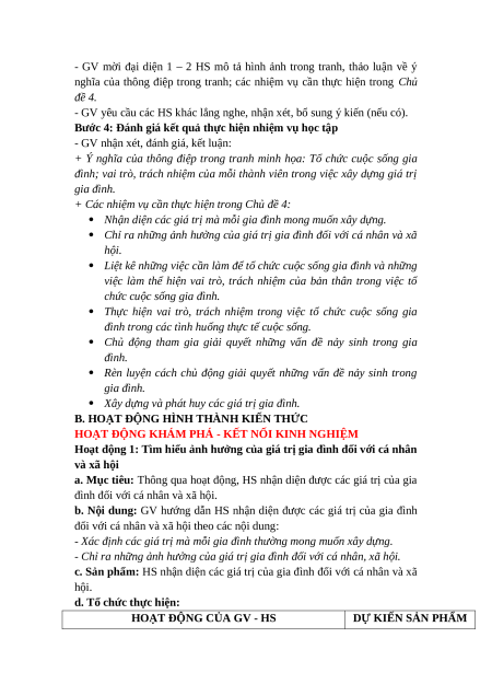 CHỦ ĐỀ 4: XÂY DỰNG GIÁ TRỊ GIA ĐÌNH I. MỤC TIÊU 1. Kiến thức