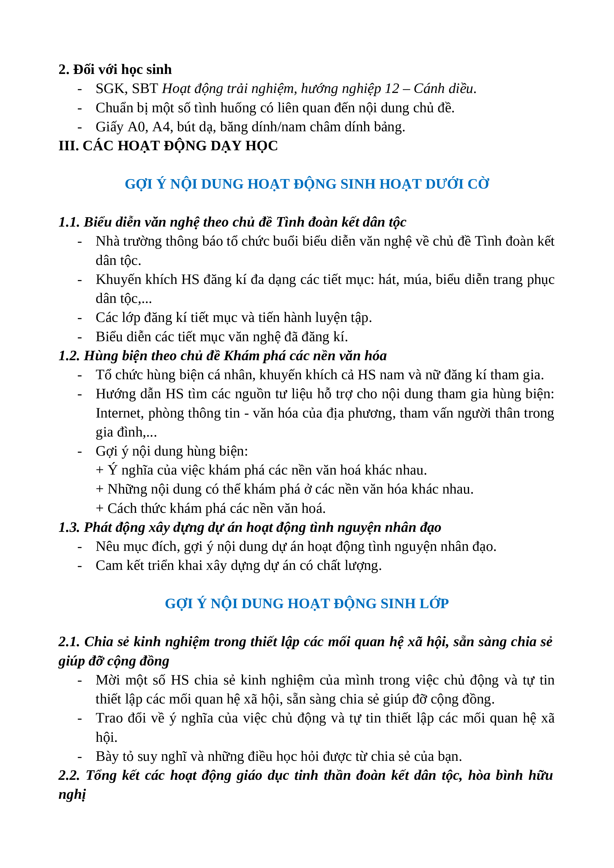 Bộ giáo án Hoạt động trải nghiệm 12 Cánh diều đã cập nhật đủ Cả năm.