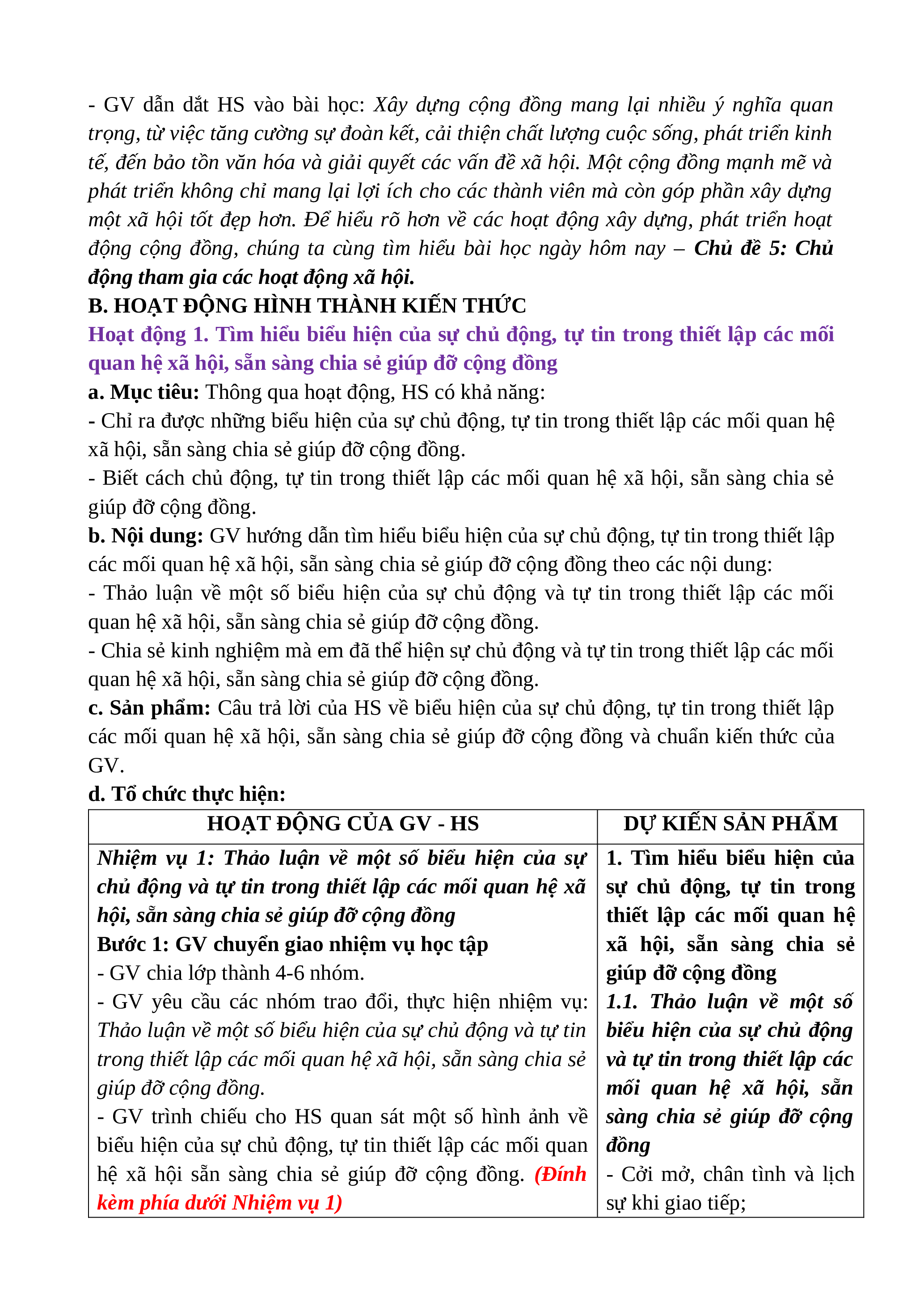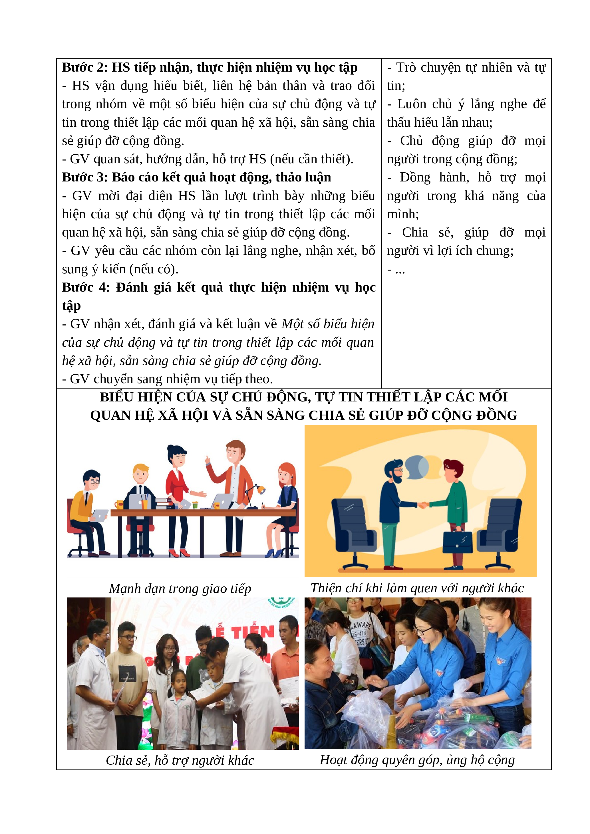 - Biết cách chủ động, tự tin trong thiết lập các mối quan hệ xã hội, sẵn sàng chia sẻ giúp đỡ cộng đồng.